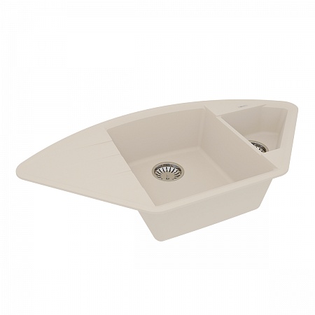 Кухонная мойка Lemark IRKANA 980 врезная угловая с доп. чашей и крылом из кварцгранита цвет: Шампань (9910048)