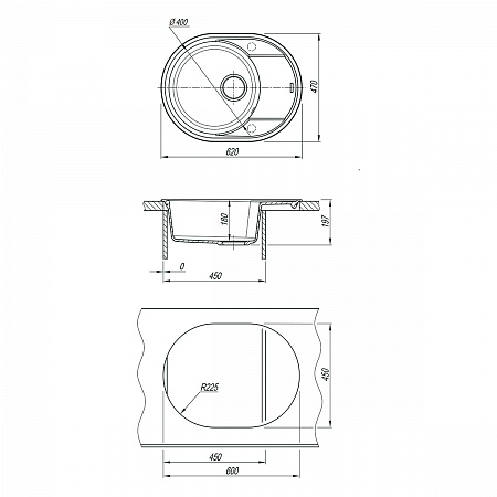 Кухонная мойка Lemark LACHA 620 врезная овальная с крылом из кварцгранита цвет: Жасмин (9910052)