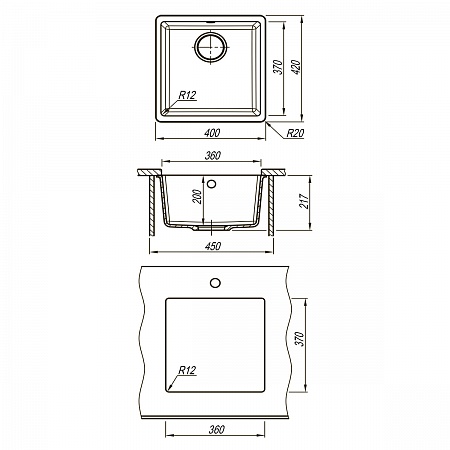 Кухонная мойка Lemark SINARA 400-U подстольного монтажа из кварцгранита цвет: Антрацит (9910061)