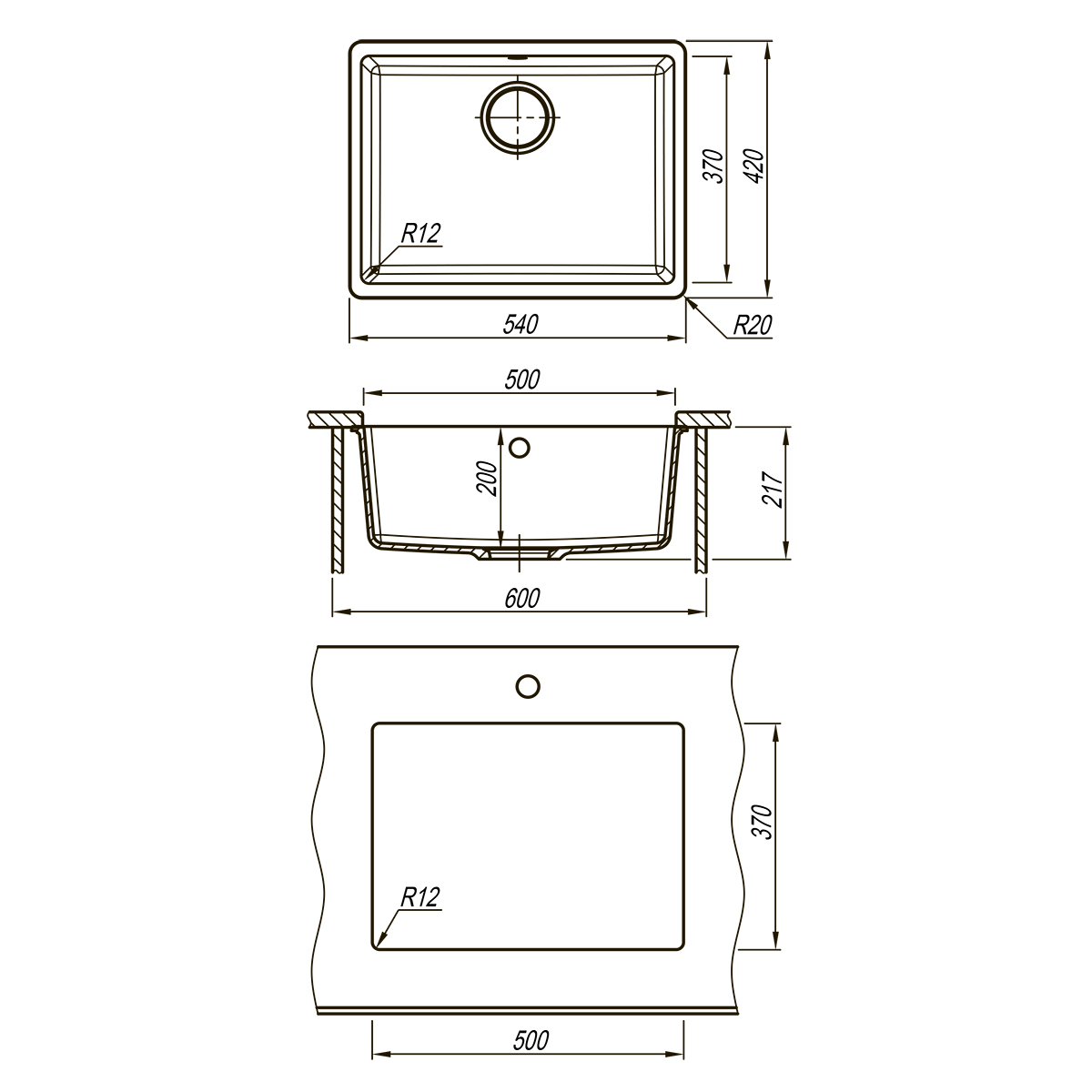 Кухонная мойка Lemark SINARA 540-U подстольного монтажа из кварцгранита цвет: Грей (9910075)