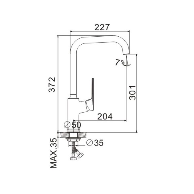 Высокий смеситель для кухни BELZ. Керамический картридж 35 мм. Поворотный излив. Съемный аэратор. Гибкая подводка 45 см. Усиленная гайка крепления смесителя.