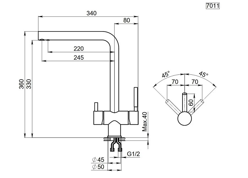 Смеситель для кухни GRANULA (7011, ЧЕРНЫЙ МАТОВЫЙ)