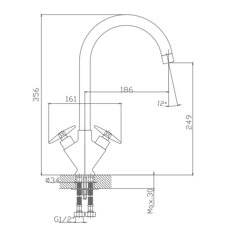 Смеситель для кухни бренда Haiba. Изготовлен из латуни. Укомплектован аэратором. Гибкая подводка 40 см. С поворотным изливом.