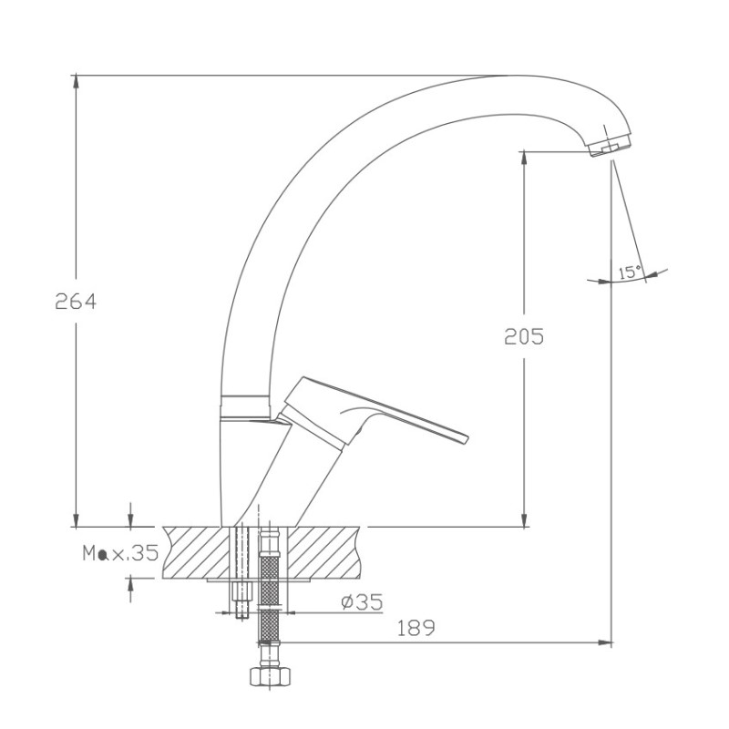 Смеситель для кухни бренда Haiba. Изготовлен из латуни. Картридж 35 мм. Укомплектован аэратором. Гибкая подводка 40 см. С поворотным изливом.