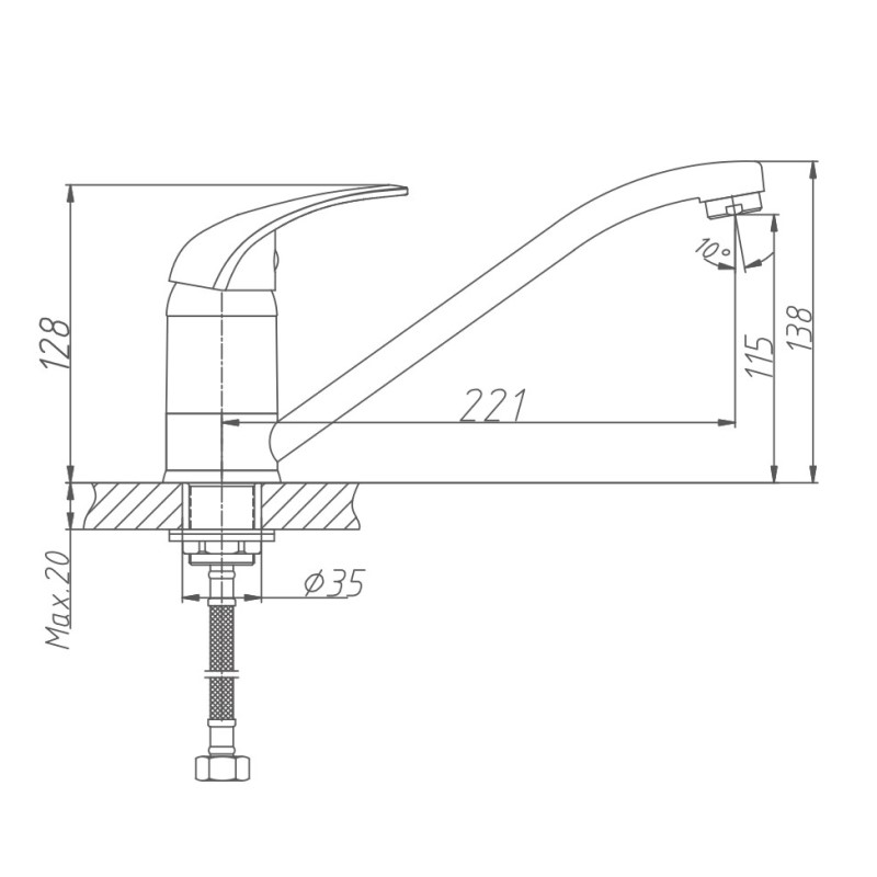 Смеситель для кухни бренда Haiba. Изготовлен из латуни. Картридж 40 мм. Укомплектован аэратором. Гибкая подводка 40 см. С поворотным изливом.