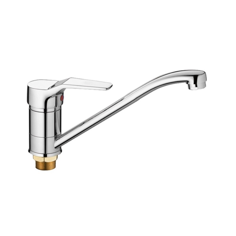 Смеситель для кухни бренда Haiba. Изготовлен из латуни. Картридж 40 мм. Укомплектован аэратором. Гибкая подводка 40 см. С поворотным изливом.