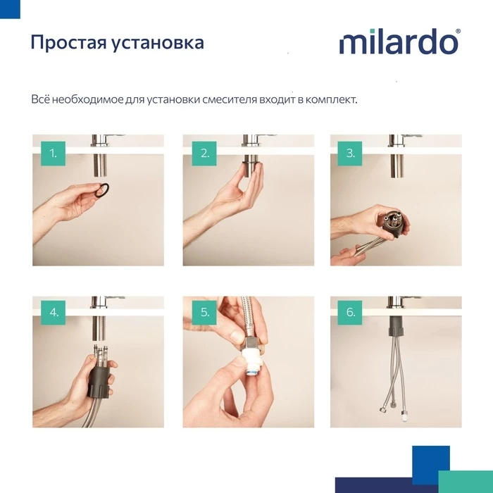 • Качественный механизм смешивания воды смесителя Milardo® рассчитан на более чем 70 000 циклов работы – это не менее 15 лет эксплуатации семьей из трех человек.