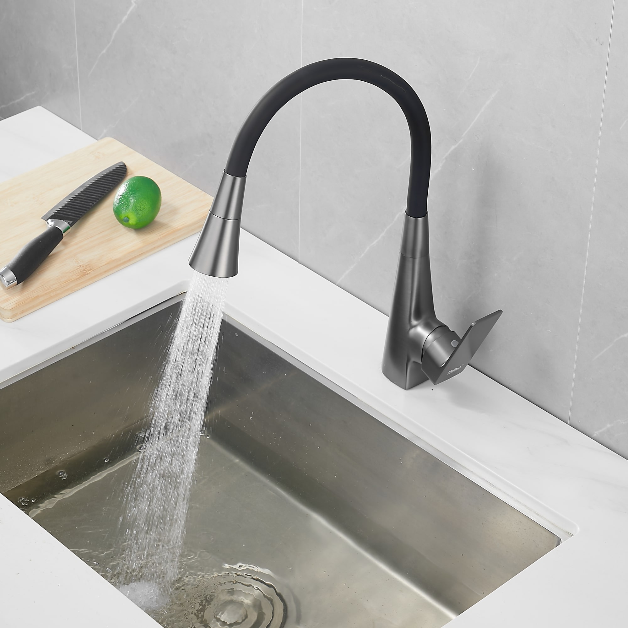 Смеситель для кухни Haiba с гибким изливом и режимом душ, оружейная сталь (HB73823-3)