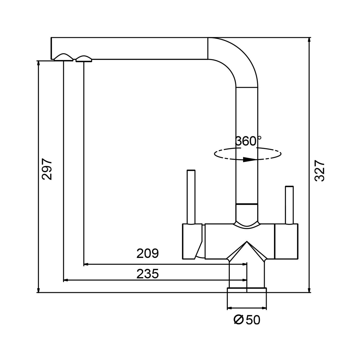 • Излив: биканальный,Совмещенный излив для питьевой воды;Поворотный;