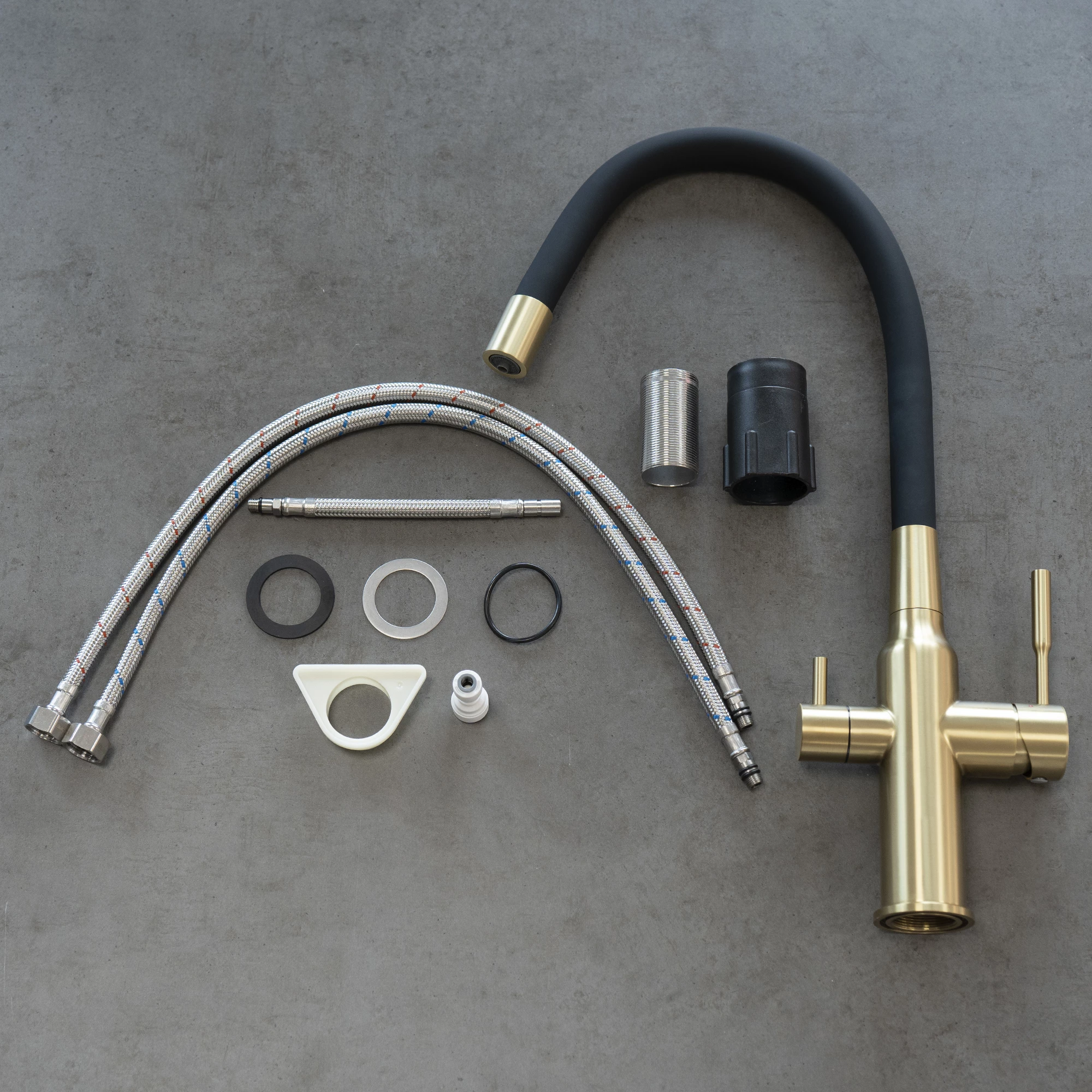 Смеситель Lemark Expert для кухни c гибким изливом, с подключением к фильтру с питьевой водой (LM5083LGN-Black)