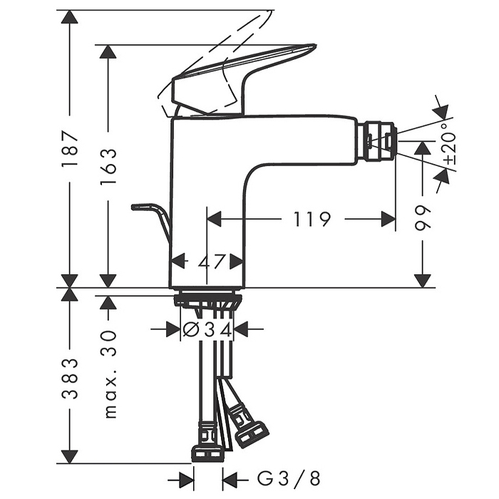 HG Logis Смеситель для биде, однорычажный 100, цвет матовый черный