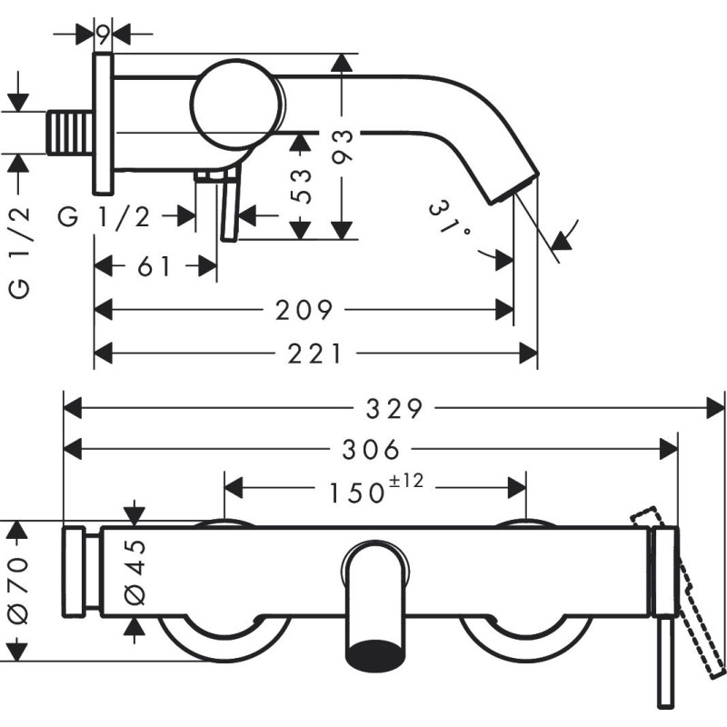 HG Tecturis S Смеситель для ванны, однорычажный, внешнего монтажа, хром