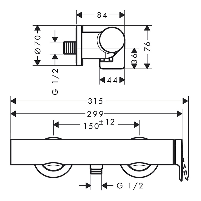 - Межосевое подключение: 150 мм (+/- 12 мм).