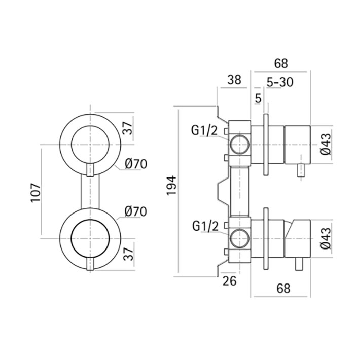 CISAL Xion Встраиваемый однорычажный смеситель для ванны/душа на 2 выхода, внешняя и внутренняя части в комплекте, цвет нержавеющая сталь AISI 304