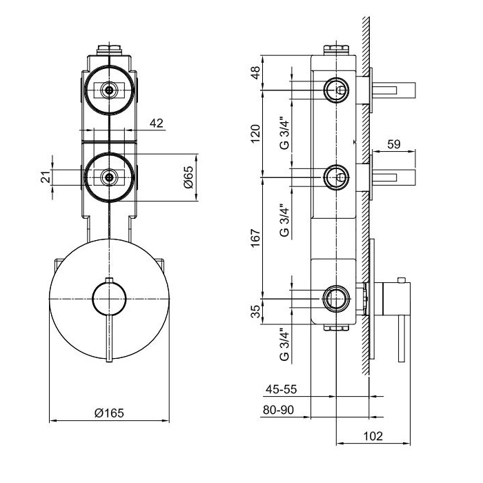Fantini Venezia Встраиваемый термостат для душа на 2 источника, 3/4'' (наружняя часть), цвет: хром