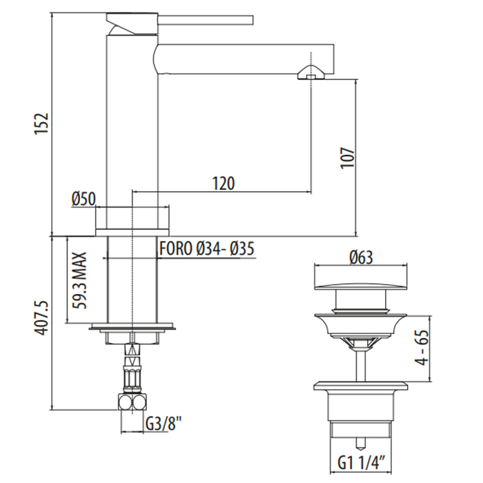 GATTONI CIRCLE ONE Смеситель для раковины на 1 отверстие, излив 120 мм, с донным клапаном, цвет хром