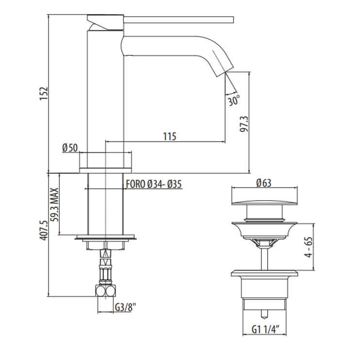GATTONI CIRCLE TWO Смеситель для раковины на 1 отверстие, излив 115 мм, с донным клапаном, цвет NICKEL SPAZZOLATO