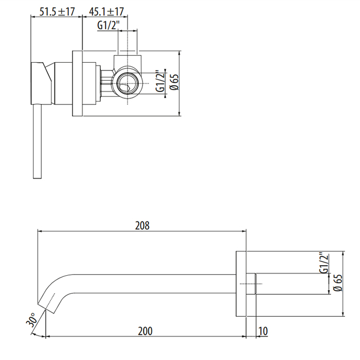 GATTONI CIRCLE TWO Смеситель для раковины встраиваемый, излив 208 мм, донный клапан, цвет хром