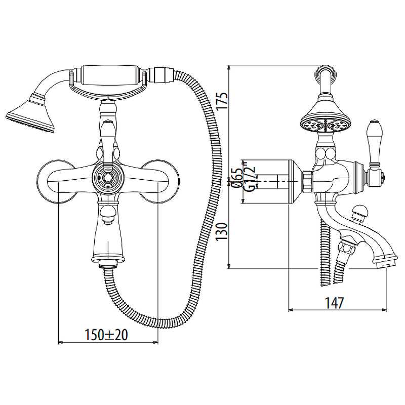 Смеситель для ванны Gattoni Orta 2700/27V0 OLD с душевым гарнитуром..
