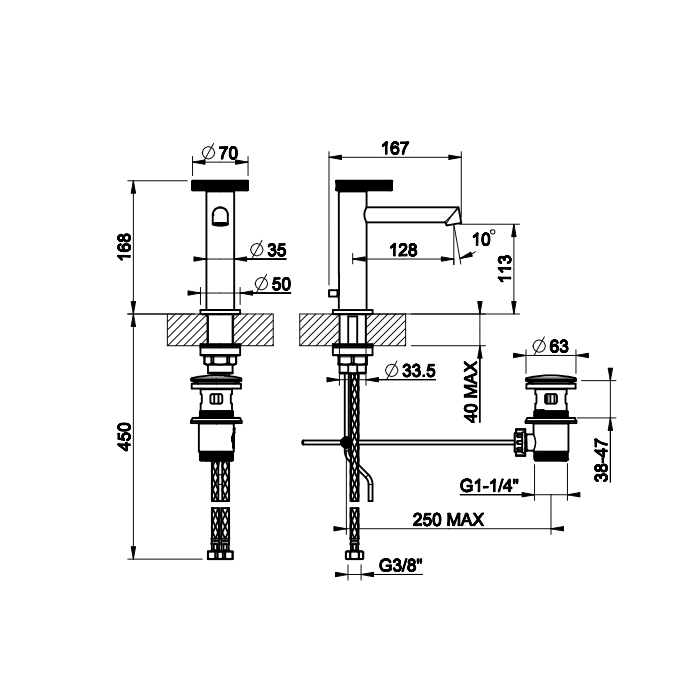 Gessi Anello Смеситель для раковины с донным клапаном и соединительными шлангами, цвет: хром