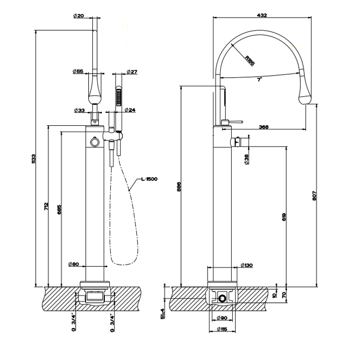 Gessi Goccia Внутренняя часть напольного термостатического смесителя для ванны 3/4" (со склада продаем с 24978#031)
