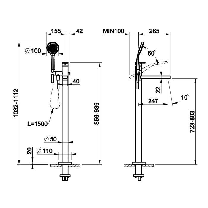 Gessi Emporio Via manzoni Внешние части для напольного смесителя для ванны с душевой лейкой, цвет: Chrome