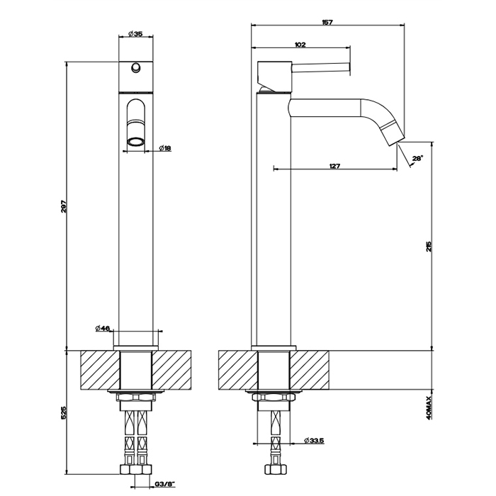 Gessi Emporio Via tortona Смеситель для раковины без донного клапана и соединительными шлангами, цвет: Black XL