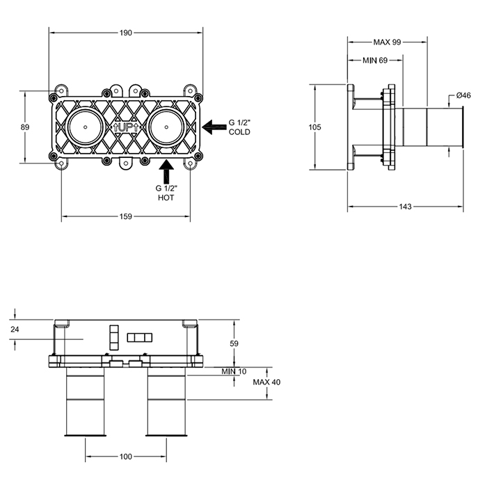 GESSI Встраиваемая часть для смесителя с изливом, цвет: steel brushed