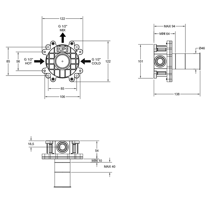 GESSI Встраиваемая часть однорычажного смесителя для душа/раковины, цвет Steel brushed
