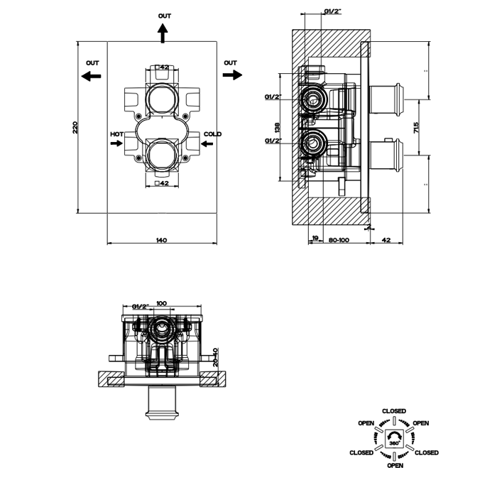 GESSI Встраиваемая часть термостатического смесителя (до 3-х источников)