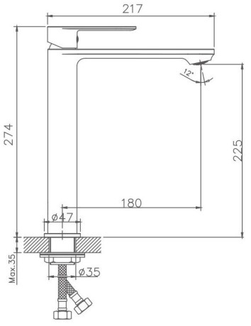 Высокий смеситель для раковины Haiba. Используется для установки на столешницу. Идеально подхлдит для раковин-чаш. Керамический картридж 30 мм. Изготовлен из латуни. Максимальная глубина монтажа 35 мм. Диаметр монтажного отверстия 35 мм.