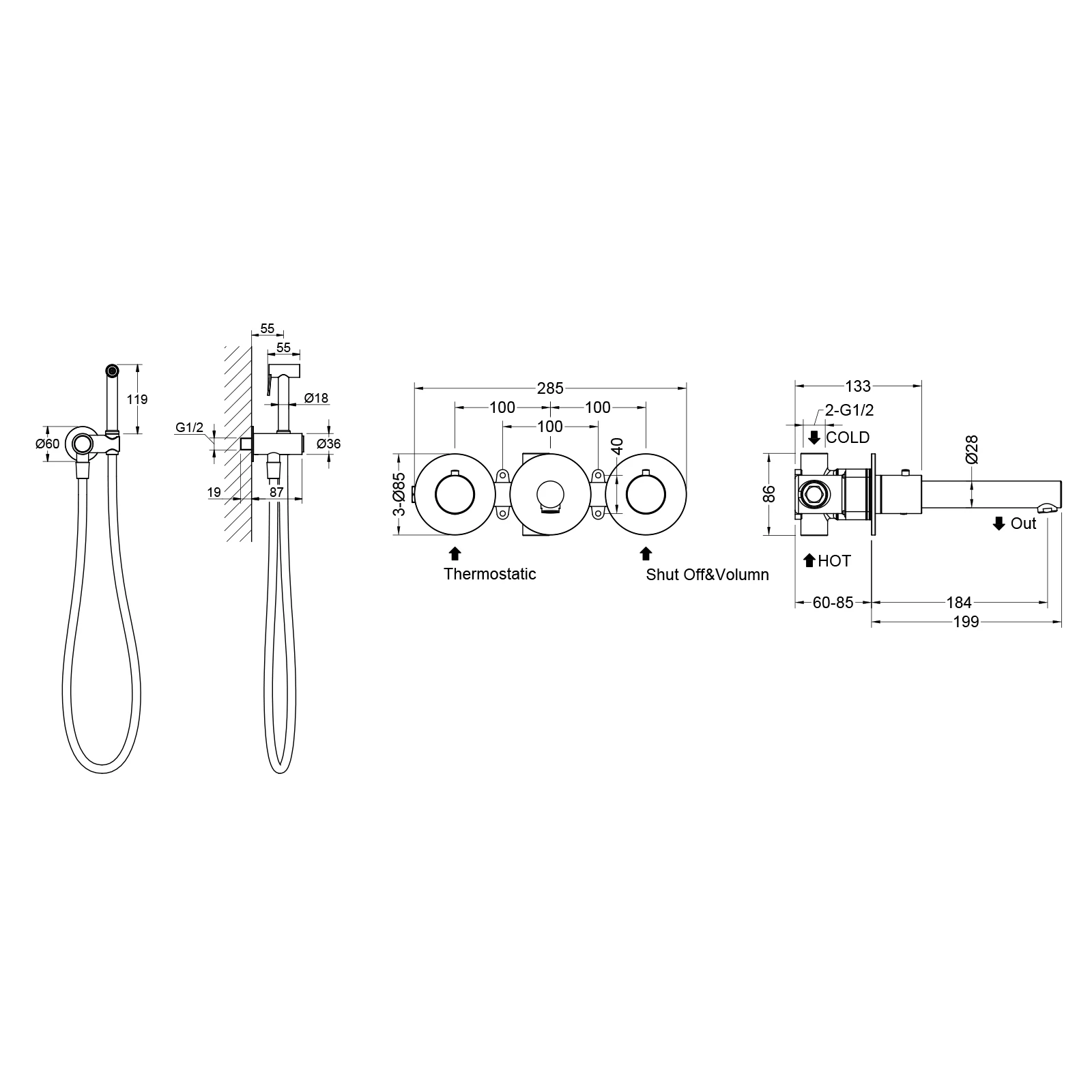 Встраиваемый смеситель с функцией подключения гигиенического душа Timo Saona 2383 предназначен для монтажа в твердой или полой стене. Встроенный блок может быть установлен с левым или правым подключением гигиенического душа. Гигиенический душ можно установить автономно на любом расстоянии от смесителя. Для использования гигиенического душа включать смеситель не требуется. Подача воды на гигиеническую лейку осуществляется нажатием кнопки, расположенной на корпусе держателя лейки. В смесителе установлен термостатический картридж для поддержания стабильной температуры воды в смесителе и гигиеническом душе.