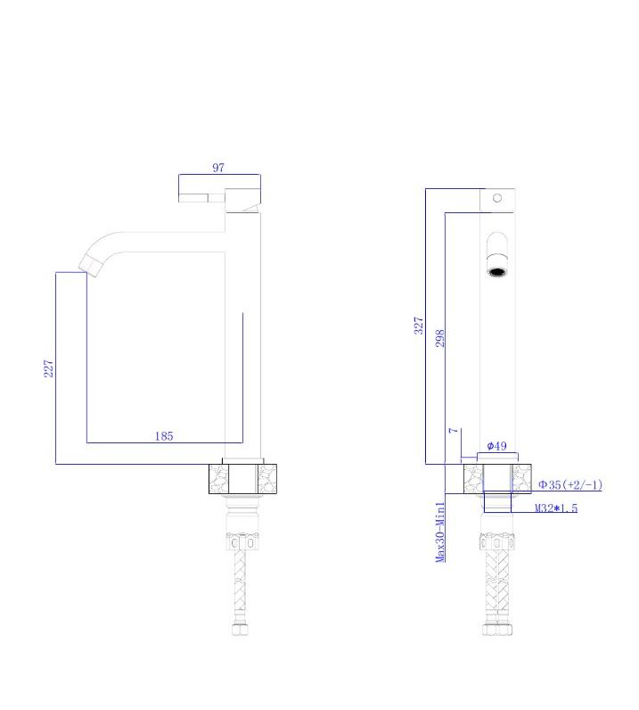 В смеситель установлен картридж D-35 с керамическими пластинами. Высота смесителя 327мм. Излив литой неповоротный 185мм., высота излива до аэратора 227мм. Аэратор изготовлен из пластика с нержавеющим корпусом, угол наклона аэратора- 7 гр.