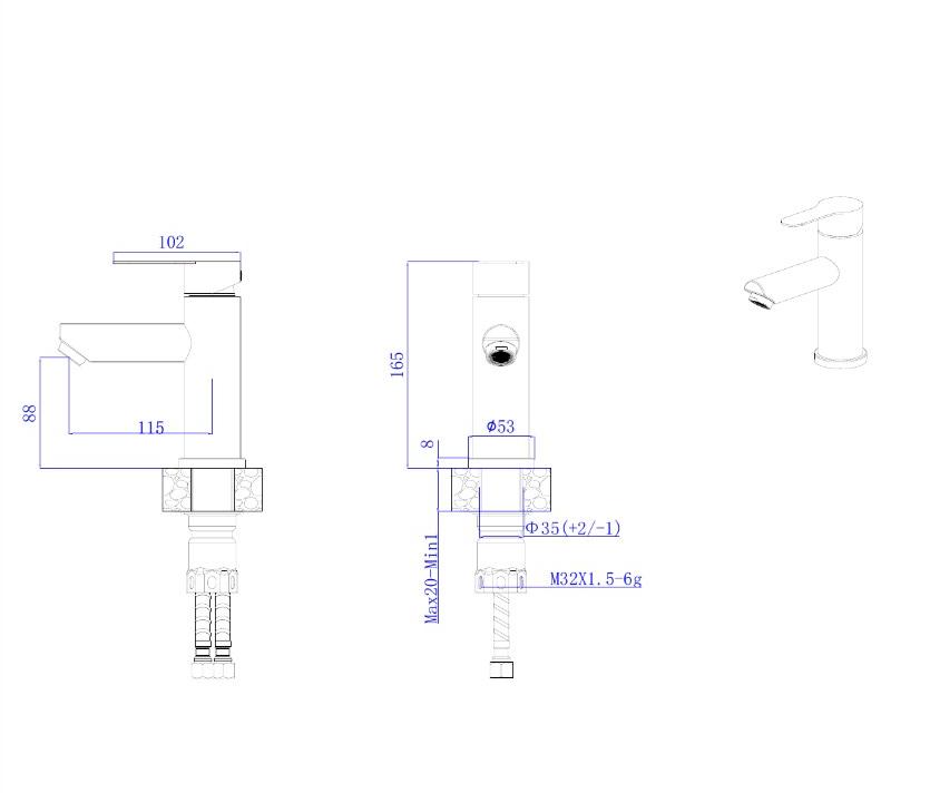 В смеситель установлен картридж D-35 с керамическими пластинами. Высота смесителя 165мм. Излив литой неповоротный 115мм., высота излива до аэратора 88мм. Аэратор изготовлен из пластика с нержавеющим корпусом, угол наклона аэратора- 7 гр.