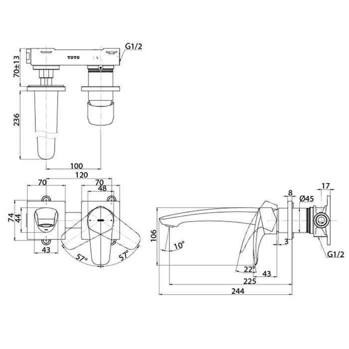 TOTO GM Смеситель для раковины встроенный , на 2 отв, цвет хром