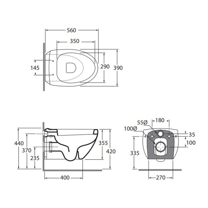 AZZURRA CLAS+ Биде подвесное 56x38.5см c 1 отверстием, c креплением KIT 2000 CF, цвет белый матовый (НЕ производится!)