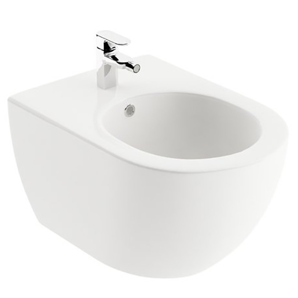 Биде с горизонтальным выпуском. Одно переливное отверстие.