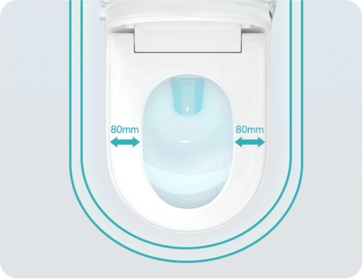 Смарт-стикер управления, боковая кнопка управления функциями, встроенное дезодорирование, ночная подсветка, UV стерилизация, антибактериальное покрытие сиденья, LED экран, грязеотталкивающее покрытие глазури