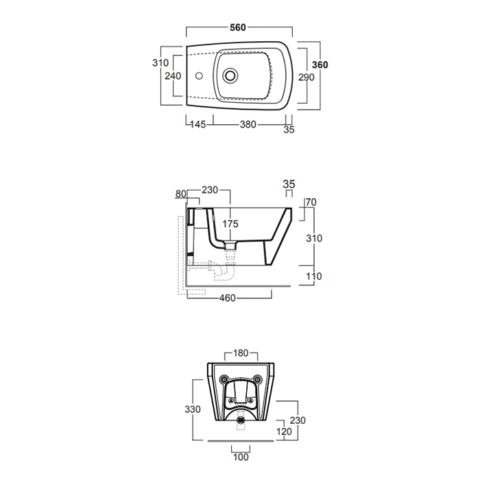Simas Baden Baden Биде подвесное 56х36 см, с 1 отв под смеситель, цвет черный матовый (без креплений F85)