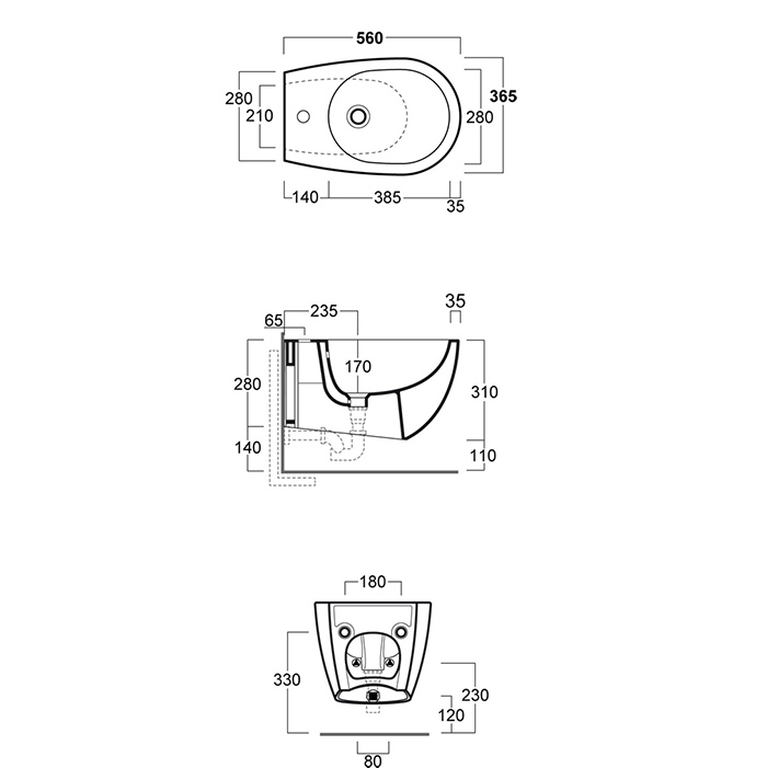 SIMAS Vignoni биде подвесное 56*36,5см, с 1 отв. под смеситель, без крепежа F85, цвет: черный матовый