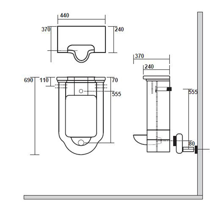 Kerasan Waldorf Писсуар подвесной с сифоном и комплектом крепежей, цвет белый
