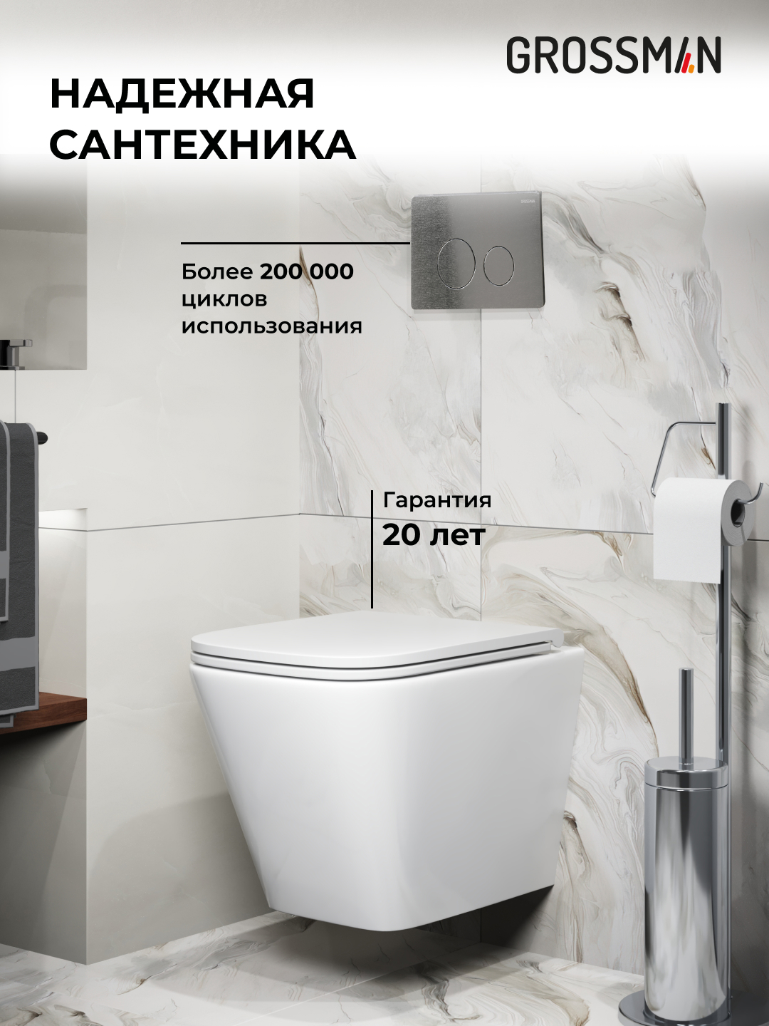 Комплект 3 в 1: Grossman инсталляция 900.K31.01.000+клавиша 700.K31.05.42M.42M графит сатиновый+унитаз GR-4479SQ, 3 места