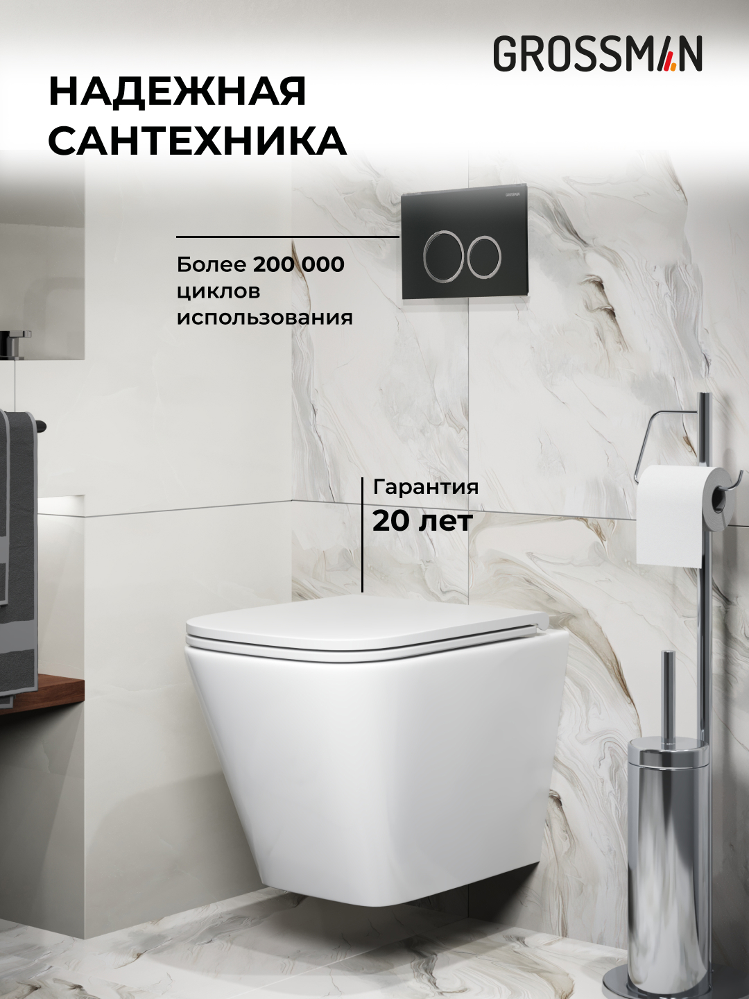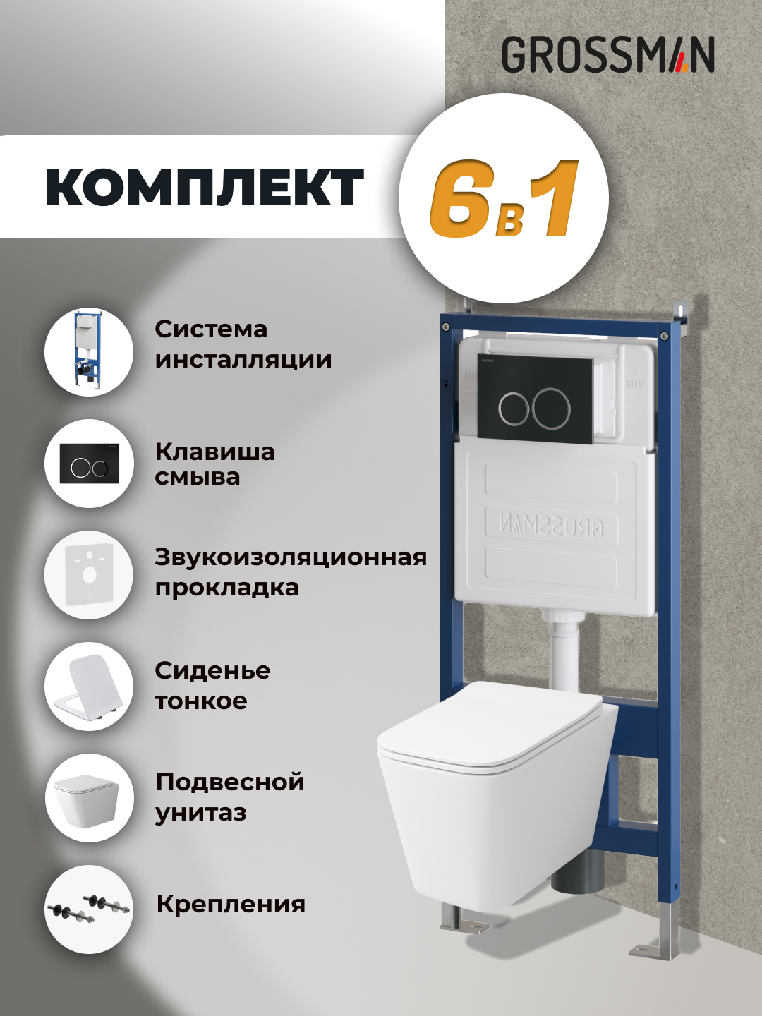 Комплект 3 в 1: Grossman инсталляция 900.K31.01.000+клавиша 700.K31.01.210.210 черный матовый+унитаз GR-4479SQ, 3 места