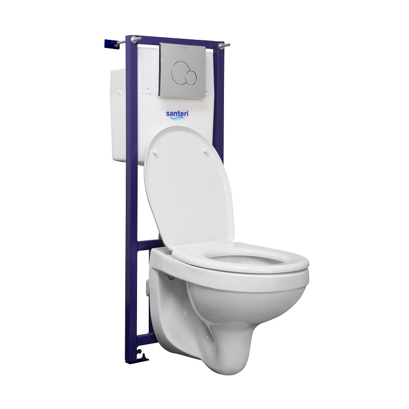 Пэк: Santeri Альфа подвесной унитаз с сиденьем + инсталляция + кнопка смыва