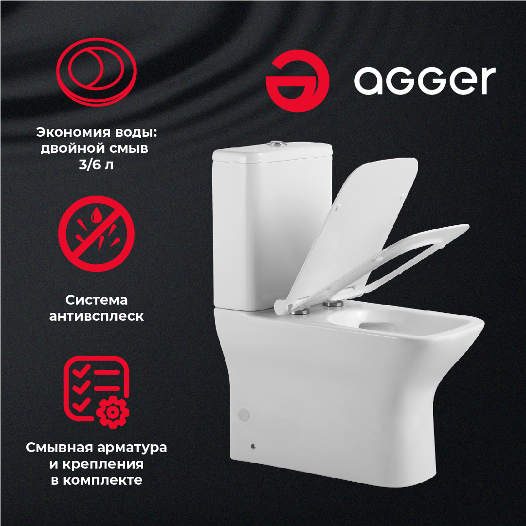 Унитаз-компакт Agger AT02000 безободковый, сиденье с микролифтом