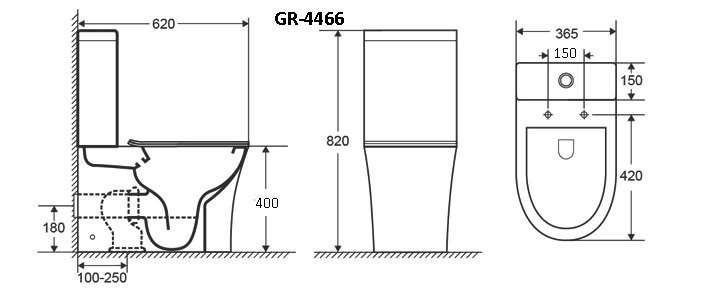 Унитаз Classic GR-4466S (620*365*820) напольный БЕЗОБОДКОВЫЙ с тонкой крышкой, 2 места