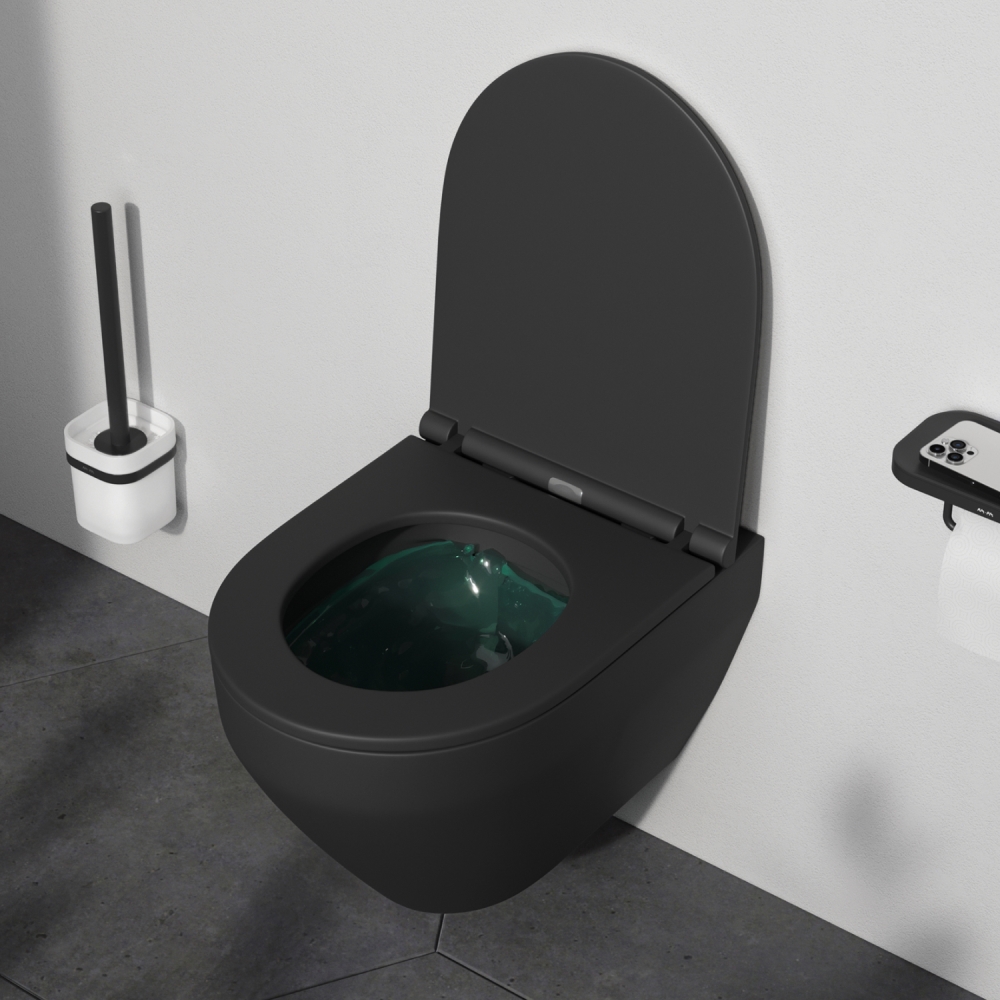 Впервые в доступном сегменте уникальная технология Twin Side – черные унитазы с двумя типами покрытий: матовое снаружи, глянцевое – внутри;