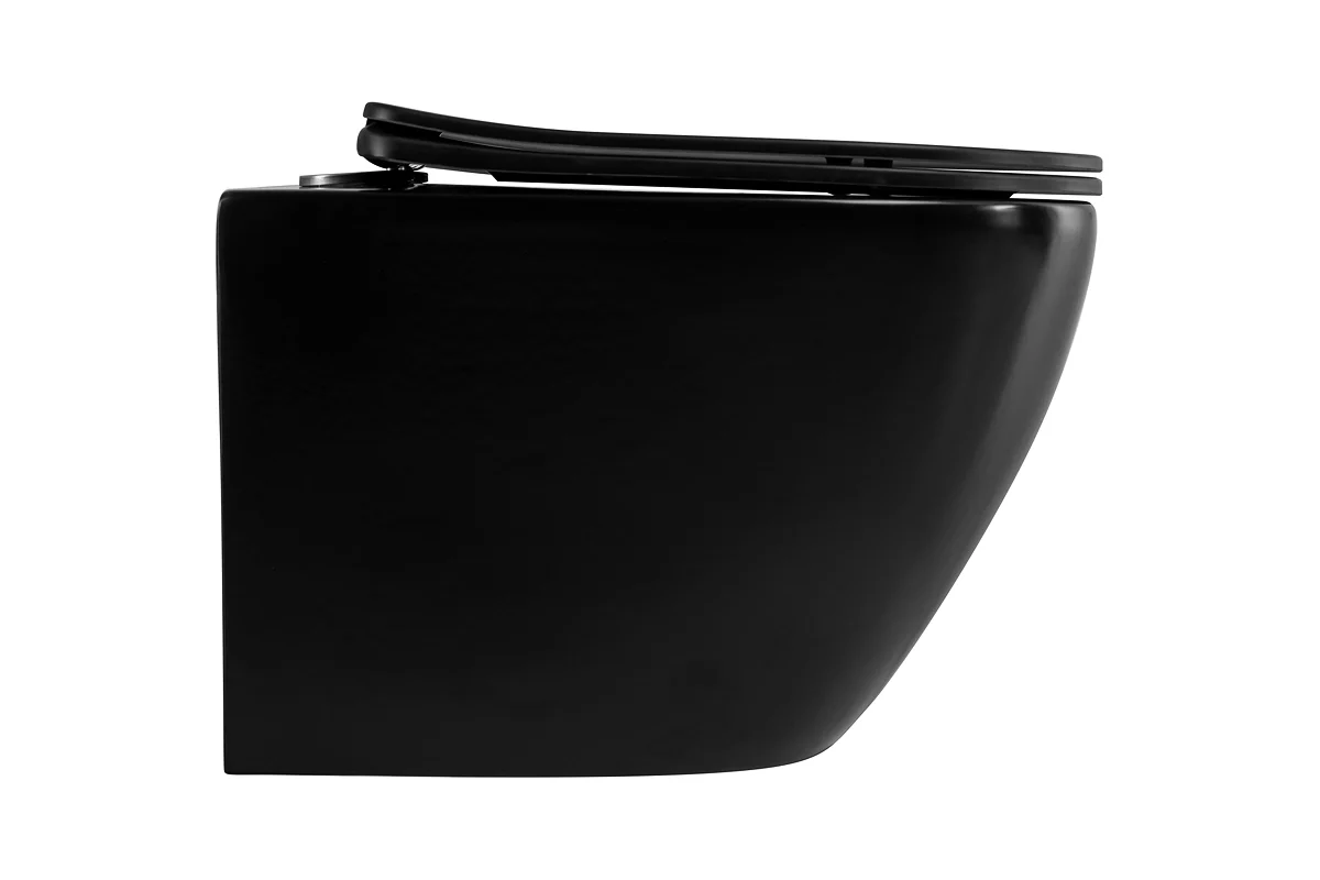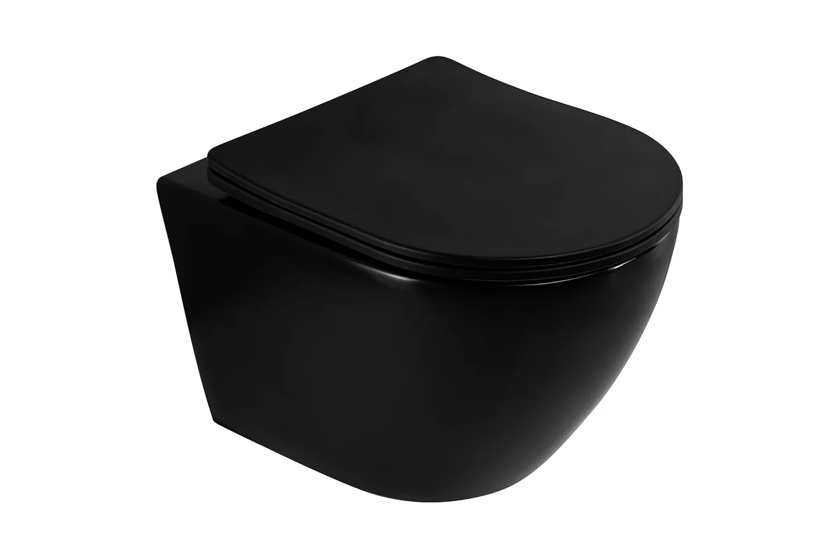 Подвесной безободковый унитаз Art&Max OVALE с сиденьем в комплекте, чёрный матовый AM011CHR-MB/SC