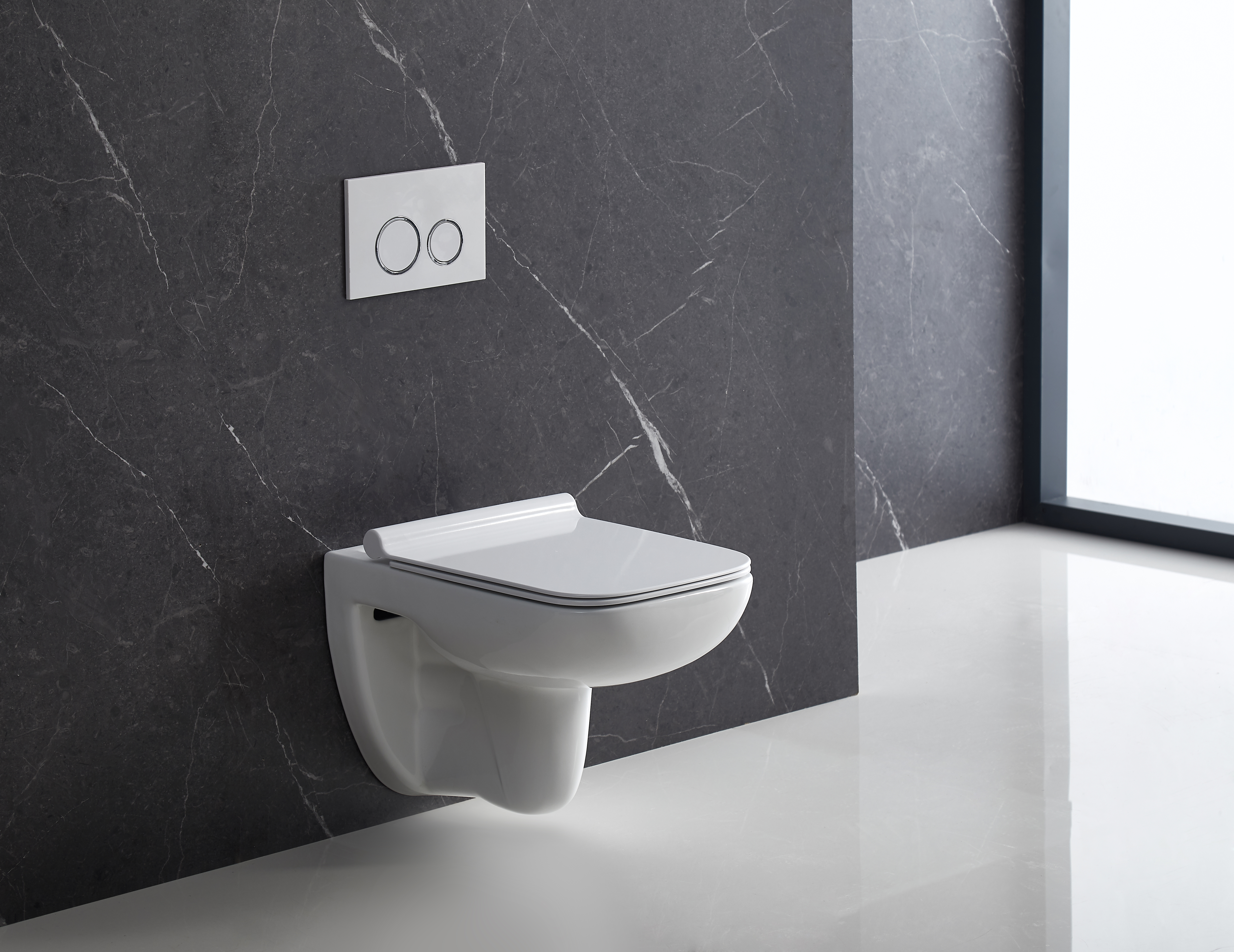 Подвесной унитаз Ното сочетает в своём дизайне прямоугольные и округлые формы, что позволяет использовать его в совершенно различных интерьерах.