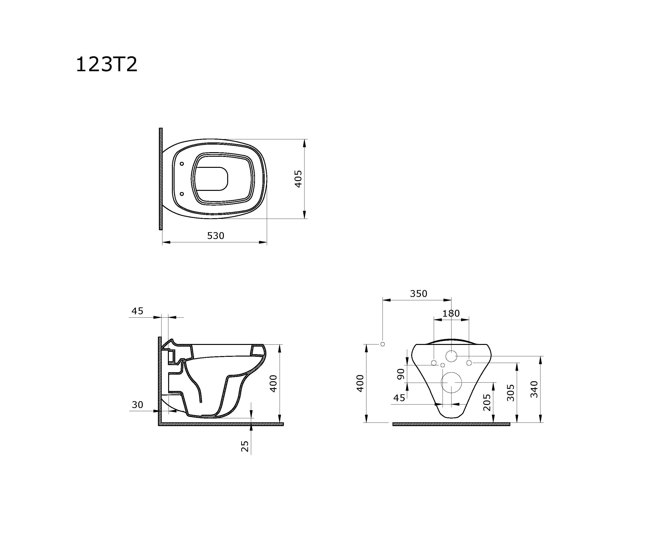Унитаз Diamond 123T20001R (530*405*375) БЕЛЫЙ подвесной БЕЗОБОДКОВЫЙ с толстой крышкой, 2 места